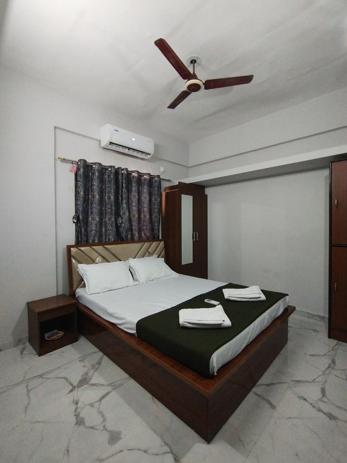 Experience the ultimate in luxury & Comfort at 'Varuna' studio unit. 305 Sq.ft unit of meticulously designed space,providing a perfect blend of style and functionality.This exquisite Suite comprises spacious AC Studio room with Pantry Kitchenette & Attached Toilet. Kingsize bed+single bed+chair. Common RO water purifier in lobby. It DOES NOT HAVE LIFT to access 1st floor. Reception & waiting area on G.floor+24hr Power backup+Carparking+close to pune-Hyd highway. 1 of the 4 Units by Kuber Suites.