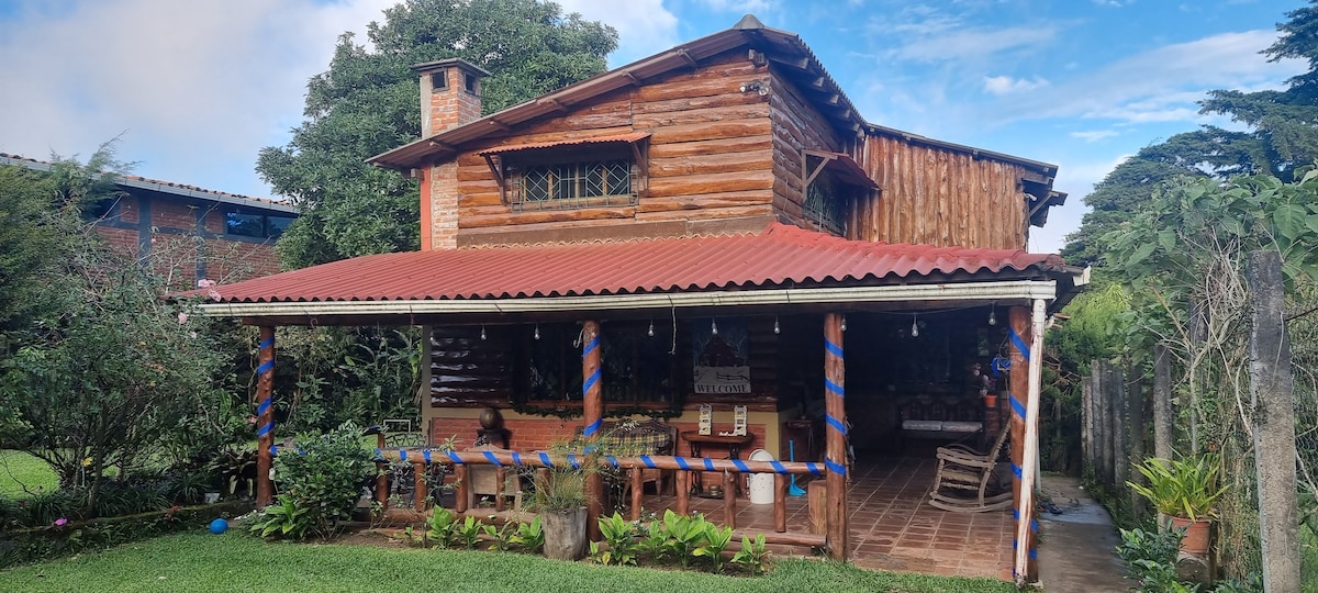 Cabaña de campo, Apaneca, a 1 cuadra de carretera ppal, complejo privado de casas con patios abiertos, seguridad, áreas internas para caminar, parqueo seguro. Si buscas naturaleza, jardines, zonas verdes y flores, este es el lugar indicado, tranquilo, sin ruidos, con vista a montaña. A 4 kms de Laguna Verde y 8 kms de Ataco. Baños con agua caliente, cocina equipada con lo necesario. Accesible a todo vehículo. NO fiestas, NO reuniones grupales. Para Uso Exclusivo de los huéspedes declarados.