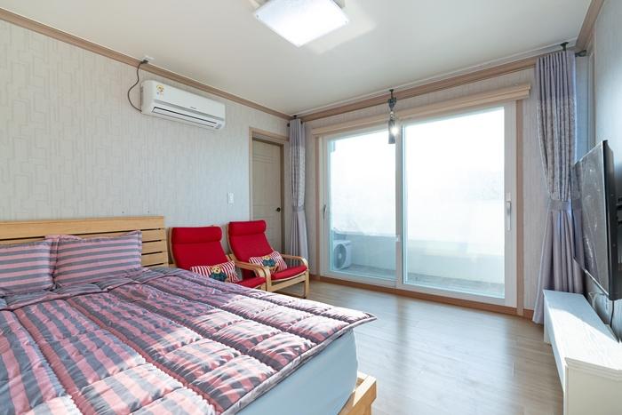 It is located in the center of the Namhae, It is very accessible to tourist attractions and It's a complete private pension with only one house, so it's more private. The sea view and the evening night sky are very beautiful This is a beautiful pension in a quiet rural village. It is a double-layered structure of a completely private house, so it is Great for acquaintances There is a terrace, so you can barbecue (free), and you can have a fire pit. There is a feeling of camping, and there is an outdoor awning, which adds to the atmosphere on a rainy day. Bedrooms 1 queen bed, 4 super single beds, There are two soft mats, generous and clean. Bedding is provided. Kitchen Tableware and spoons and chopsticks for large families, pots, frying pans, Electric pressure rice cooker (for 10 people), various seasonings, dining table for 8 people, dining table for 8 people, Zaigle, Zaigle, Induction stove, microwave, refrigerator, electric kettle, electric kettle, bean coffee, grinder, coffee maker, coffee maker, ice maker (summer) Bathroom Spacious bathtub and generous amount of towels, toothbrush, toothpaste, soap, body wash, body wash towel, shampoo, hair dryer, hair dryer, hair dryer, hair dryer, hair comb Bike beam projector, Nintendo game console, children's book, bedminton, baseball glove Rummmikub, Jenga, etc.