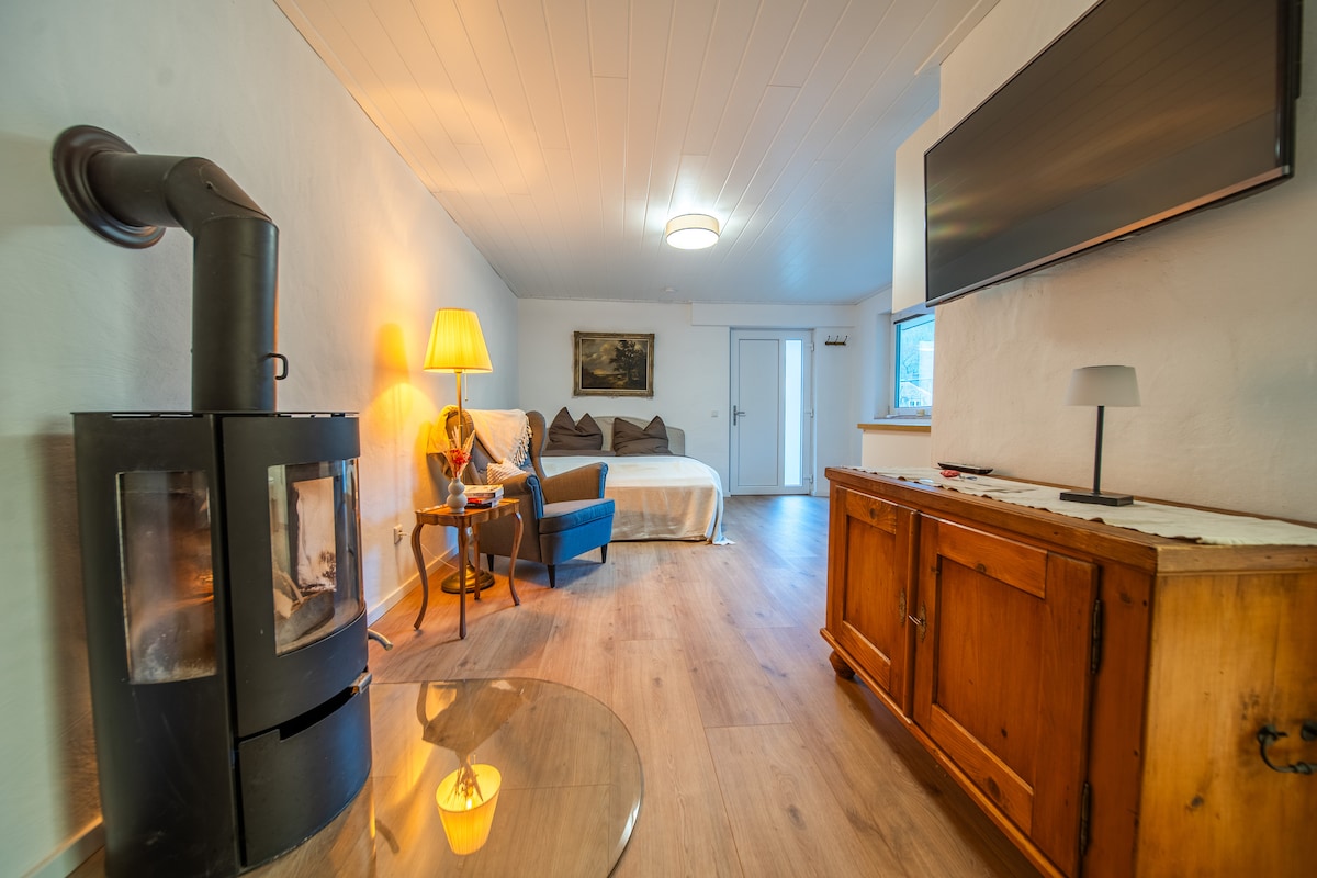 1 room with for 2 people,couch,small fully equipped kitchen,bathroom with window. The apartment has its own entrance in a green,quiet location at the gates of Koblenz, 5minutes to the university;Walks on the edge of the forest possible; Seating area outside; 10 minutes by car to the city of Koblenz,the Rhine Valley or the Moselle Valley;for nature lovers-hikers and guests who like to live quietly in the countryside and are still well connected to all the highlights in the region. (car required)