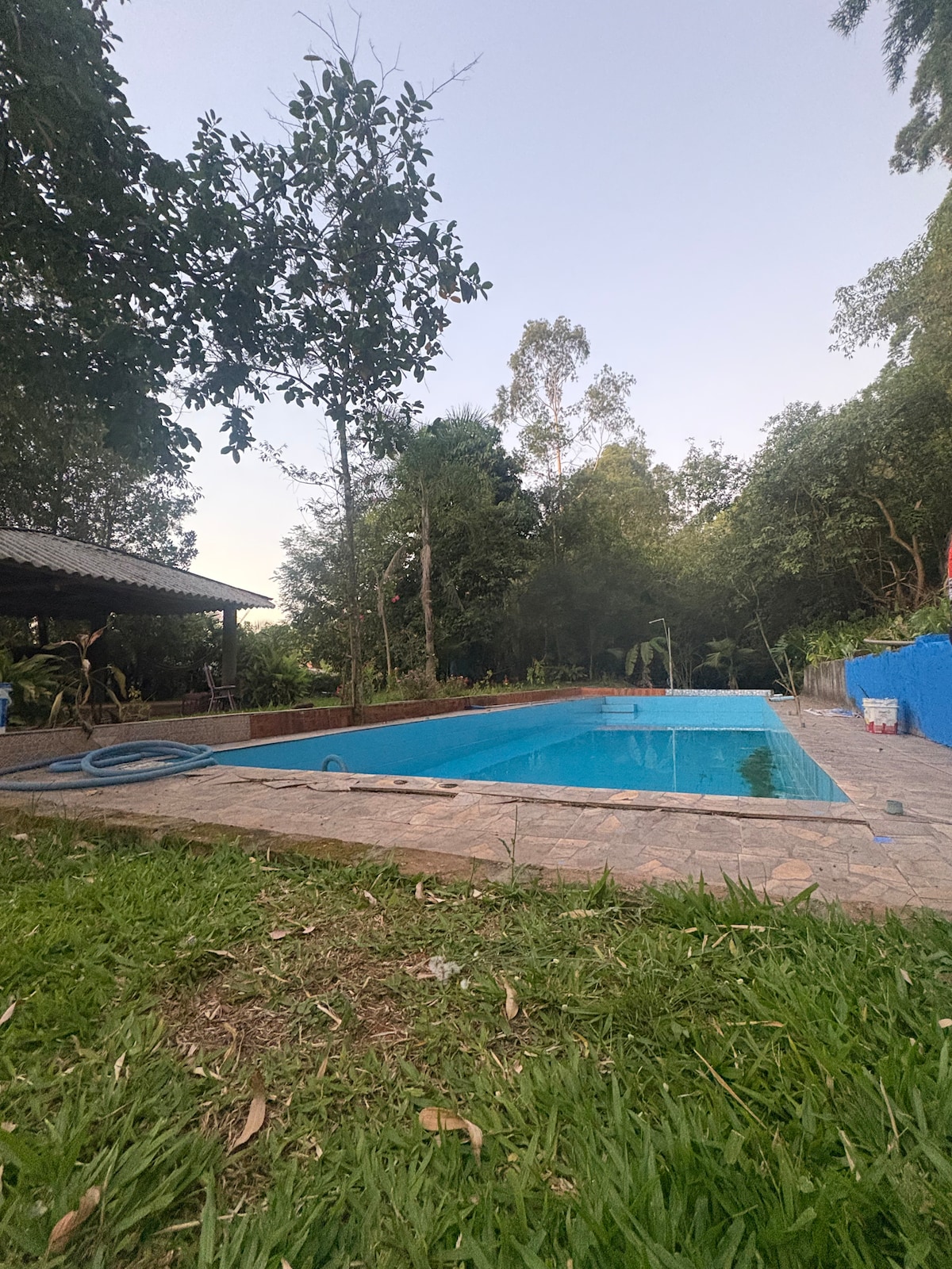 Espaço de lazer! Quiosque completo com piscina. Nosso espaço foi pensado para um dia de lazer em família ou amigos. No quiosque tem banheiro com chuveiro; Na área da cozinha tem a bancada com pia e fogão; Refrigerador e churrasqueira. Ficam disponíveis pratos, copos, talheres e espetos; A pátio é totalmente cercado, A piscina é aquecida por placas solares (sendo necessário sol para aquecê-la);