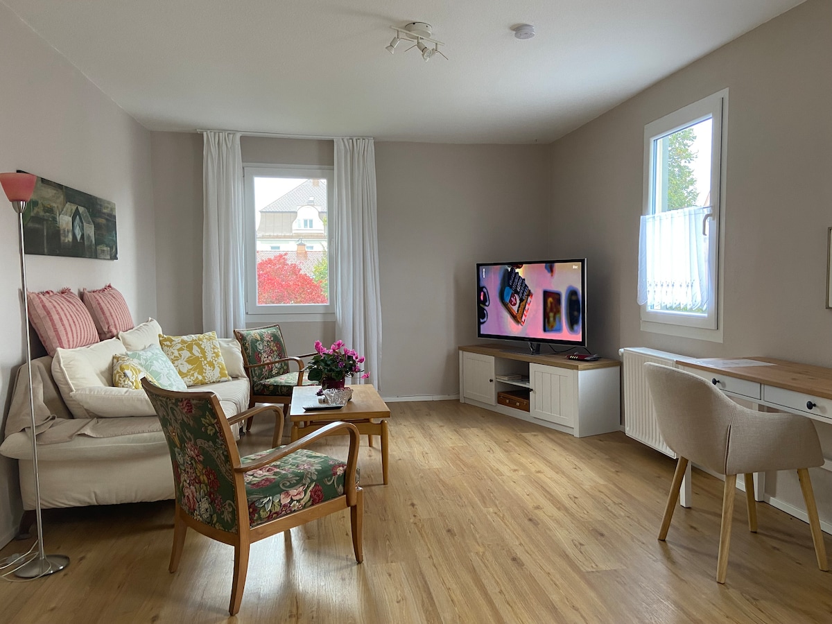 Our exclusive apartment is located between the Allgäu Alps and Lake Constance. Supplies: - New kitchen-living room with sitting area - Separate living room with high-quality sofa bed for 2 children -bedroom with double bed - Spacious bathroom with bathtub and washing machine Leisure activities: Our apartment offers the ideal starting point for many experiences in the Allgäu. The West Allgäu cycle path and the cross-country ski run are in the immediate vicinity.