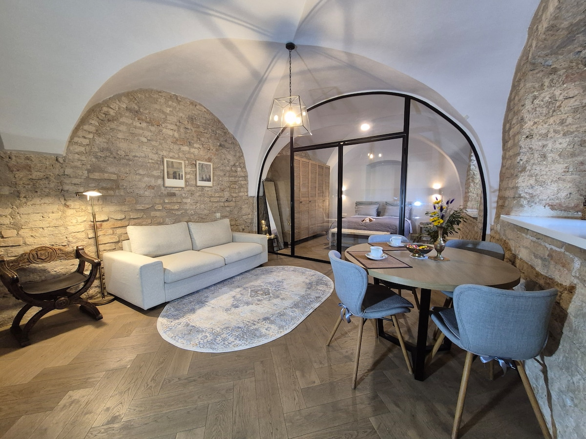 Discover the gem of Vilnius! With unique 19th-century brick walls and arch ceilings, this space exudes warmth and character. Decorated with antique Lithuanian household items, it offers a true taste of local culture. What sets this apartment apart - infrared sauna! Treat yourself to a private spa day or unwind after a long day of work. The sauna heats up to a soothing 75 degrees, providing the ultimate relaxation experience.