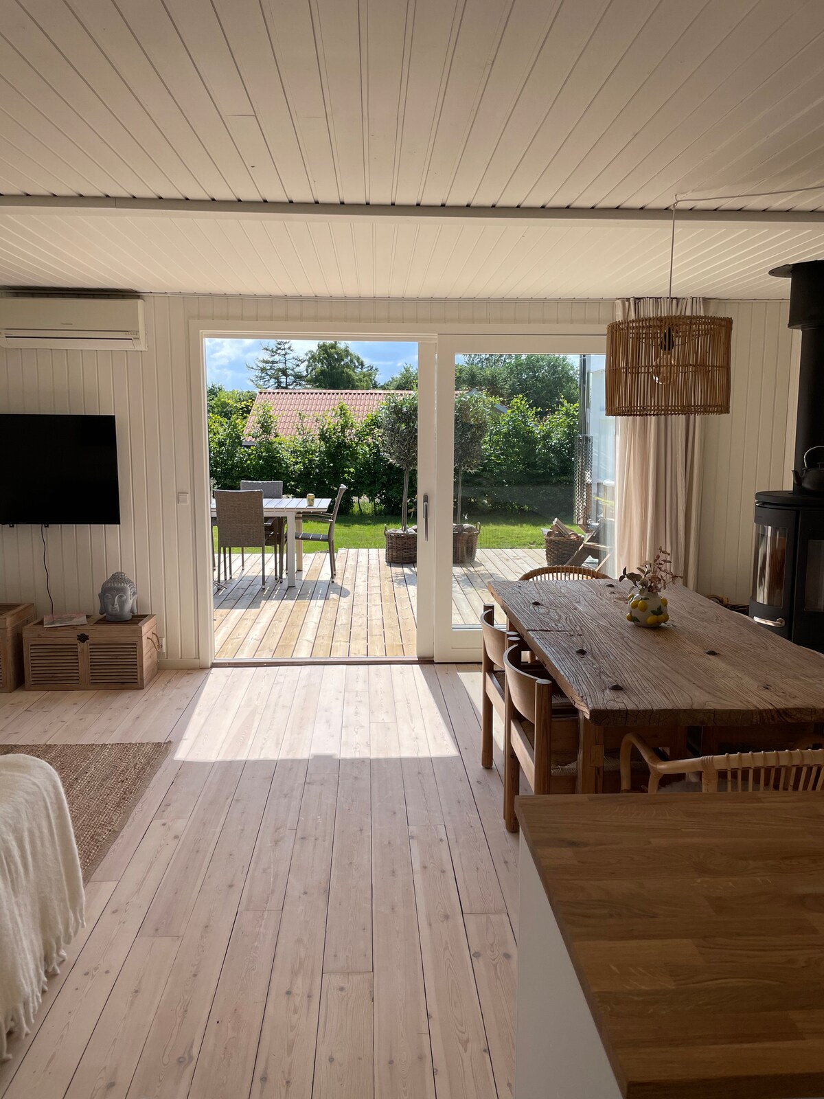 Located at the end of a calm little road, our newly renovated summerhouse offers cozy Nordic style with full privacy. • 84 m² • 3 bedrooms • 500m from the beach 🏖️ • Spacious open-plan kitchen & living area with its high-ceiling and wide garden views • Sunny southwest-facing terrace with a wood-fired wilderness bath, opening directly to the garden • Grill & sunbeds for relaxing outdoors