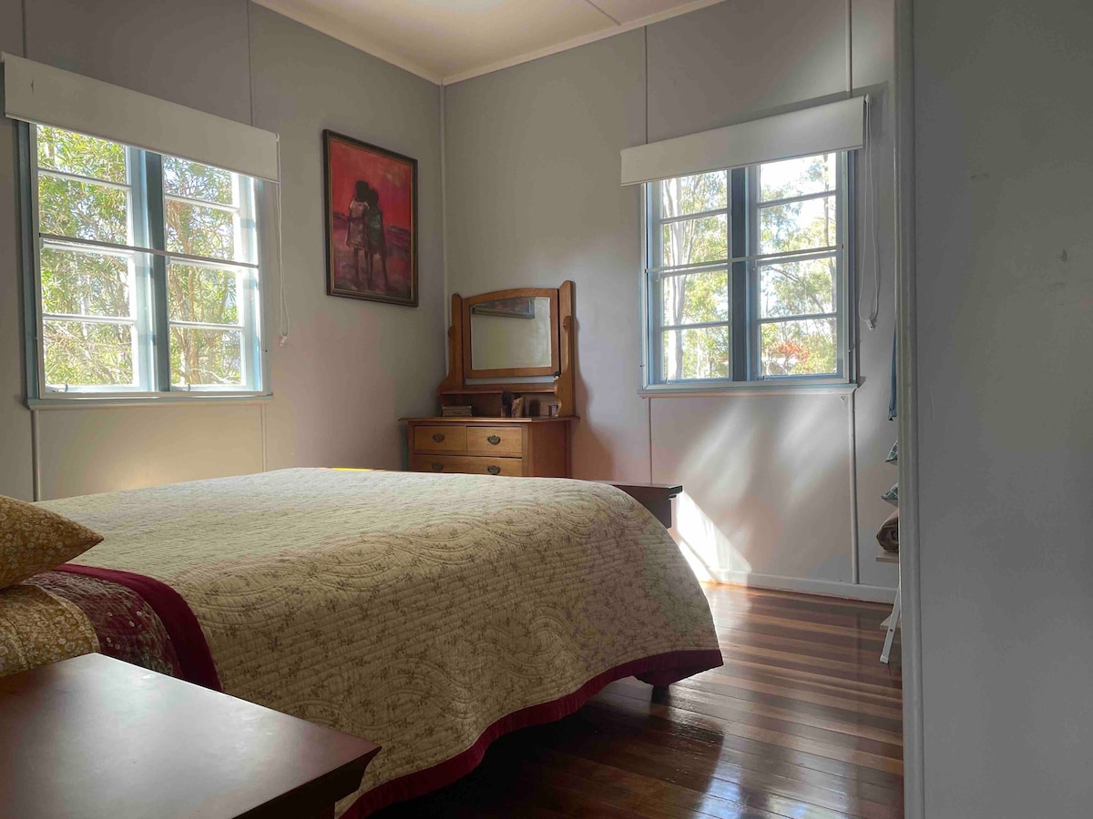 Welcome to Maggie's Cottage - an old-fashioned Queenslander with modern comforts set in a perfectly private and peaceful corner of our farm (Mary Valley Yuzu). Ideal for one or two couples but not really suitable for children. While here enjoy the rural views, read, chat, bird-watch, relax around the fire-pit, and generally feel the serenity. Explore local markets, bush trails, and quirky towns like Imbil, Kenilworth and Amamoor.