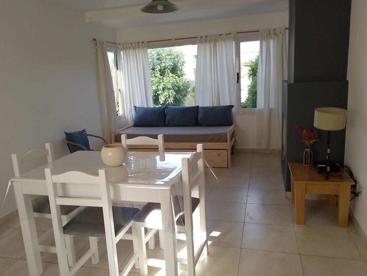 Located in the quiet and traditional residential neighborhood of Golf Antiguo de Tandil, 15 minutes from downtown. Living/dining room with fireplace, kitchenette, full bathroom and rooms with air conditioning and gas heater. It has an L-shaped gallery with a ping-pong table, foosball, Paraguayan hammocks, and a grill. We have a pool shared with Guido's family (bring deck chairs, tarpaulins and pool towels). A well-stocked pantry just 2” away (one and a half blocks).