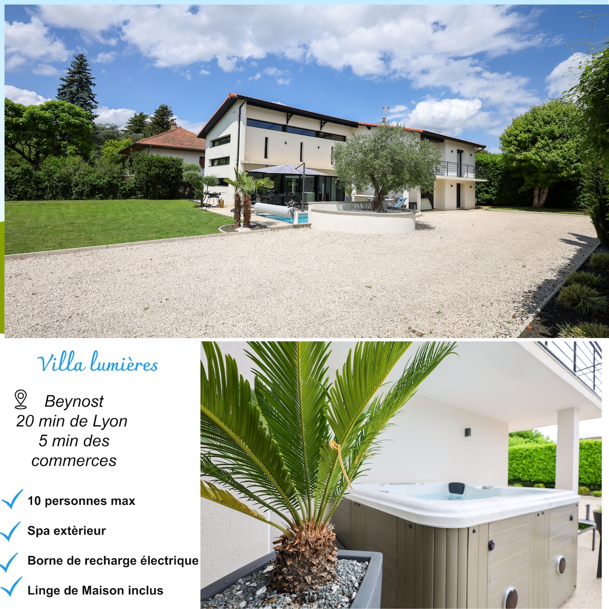 Villa lumière, spa, recharge véhicule, proche Lyon