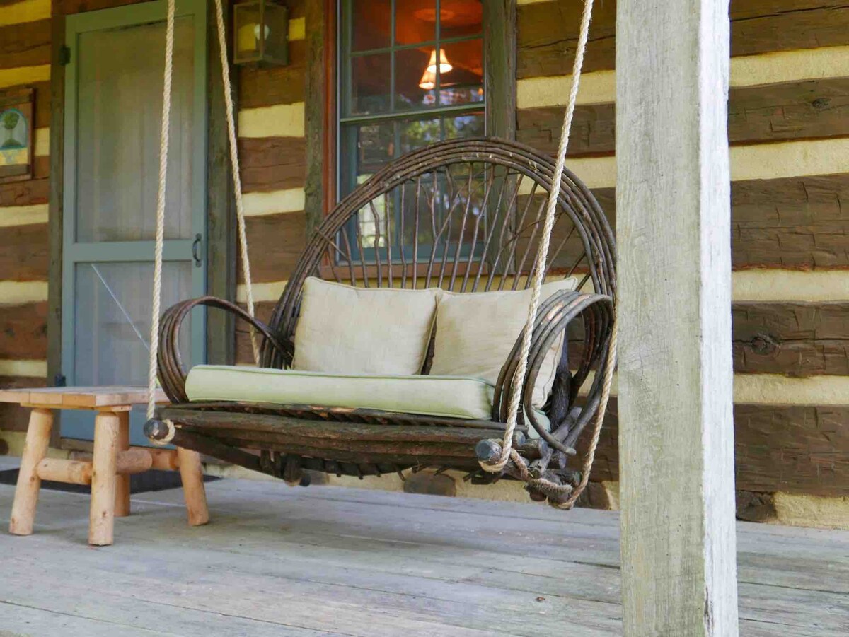 Our cabin, located in the foothills of the Appalachian Mountains is uniquely positioned overlooking a large open field where hawks hunt and bears leisurely stroll. Our neighbors have horses that peer over the fence (nosy) pet them but don’t feed them, please. Our cabin was built in 1865 by a Confederate soldier returning from the Civil War. Eleven children were born and raised in John Pope Cabin. Our cabin is rustic. An inviting front porch with swing is waiting for you @walnuthillcabin
