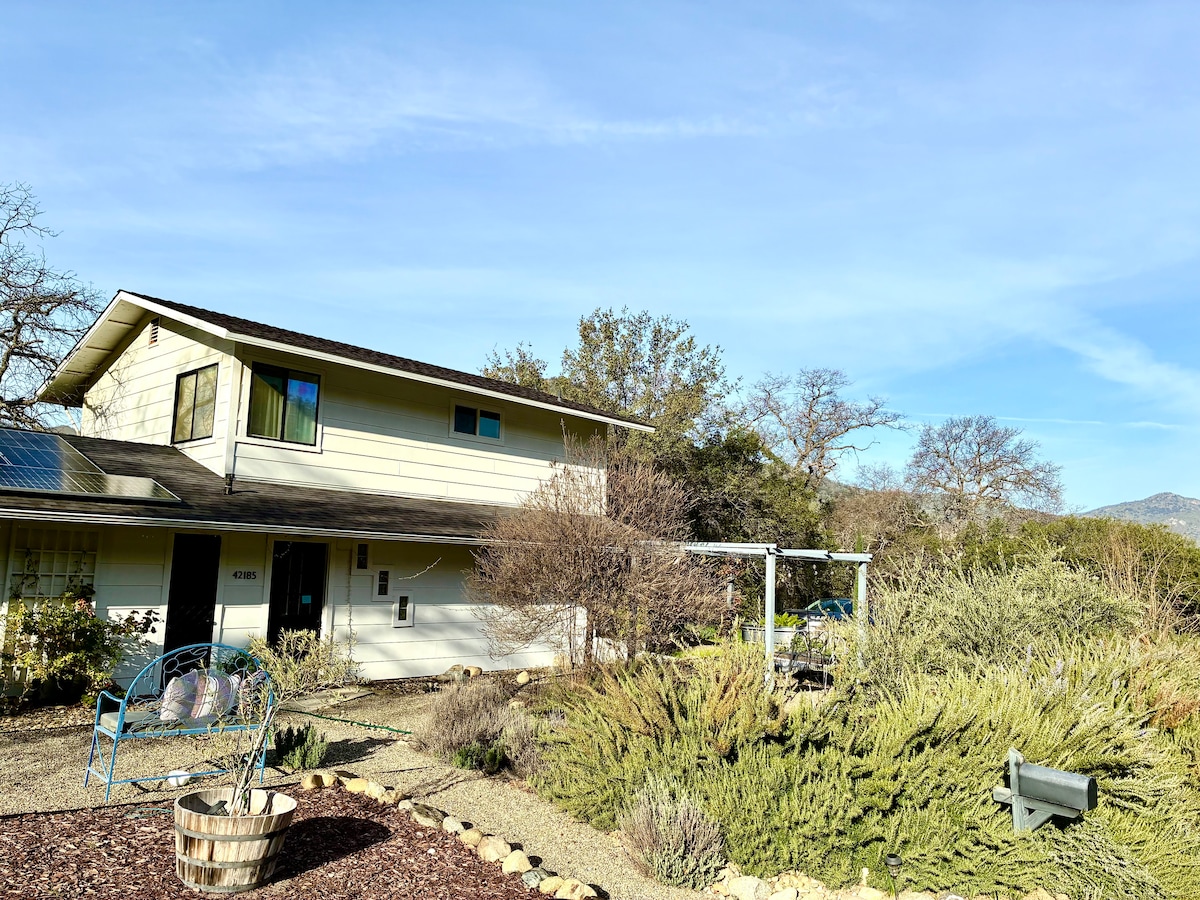 ARTSY MID-CENTURY Casita, minutes from Sequoia & Kings Canyon Nat’l Parks. Enjoy my spacious studio getaway on a private hill surrounded by gorgeous mountains & the sounds of the Kaweah River. Secluded, yet minutes away from restaurants, bars, galleries & markets. Full kitchen, half fridge. Basics, Hot Chocolate, coffee/tea spices, BBQ Grill, wood burning fireplace, WIFI, comfy Queen bed. Huge Rock shower! Explore the Parks, come home & relax, chill out in the SPA and stargaze... BLISS!