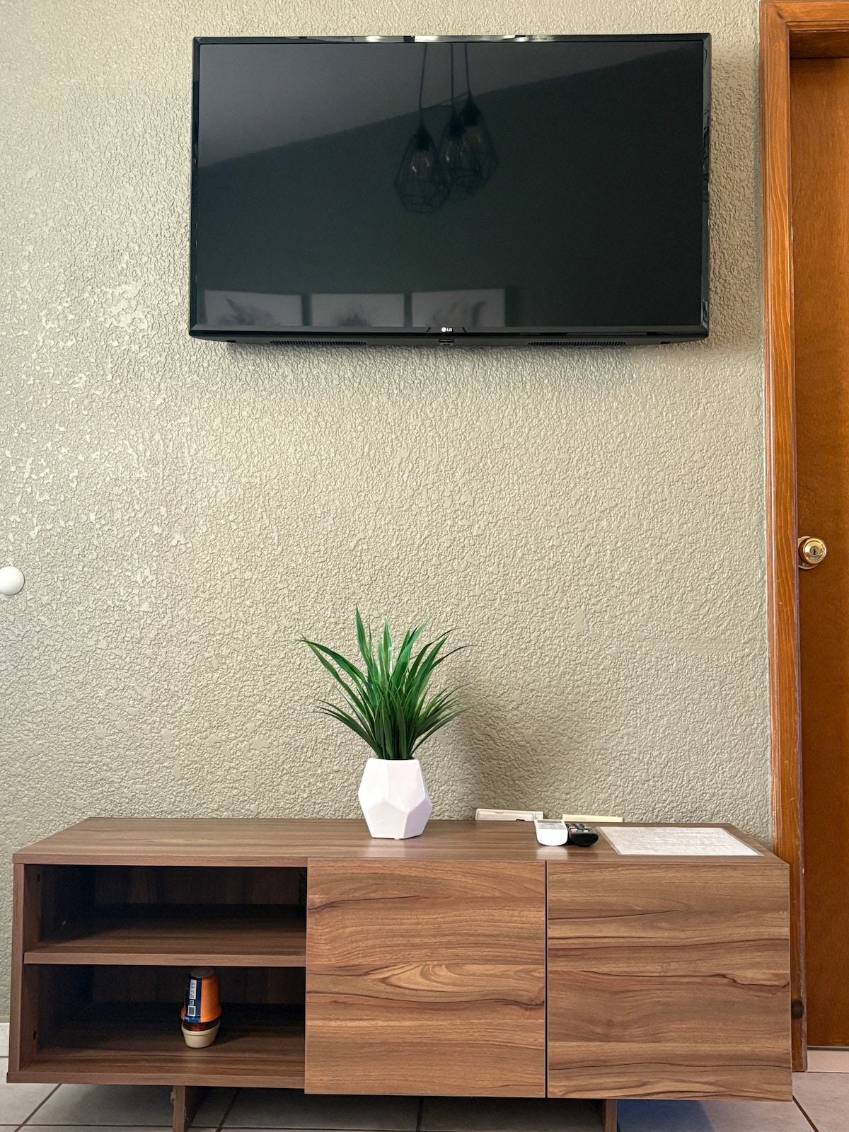 Two-bedroom apartment in the Santa Fe area (in Vista Bella). Nice decor and good amenities, Netflix, WiFi, and cable. It is located in a modest, simple and quiet area with a shopping center about 1.5 km away. With a cinema, restaurants, and bars. It is not a tourist area but there is a public transport option about 50 meters from the apartment 24/7 to the city center. It's about 25 minutes to the border and about 15 minutes to downtown Rosarito by car.