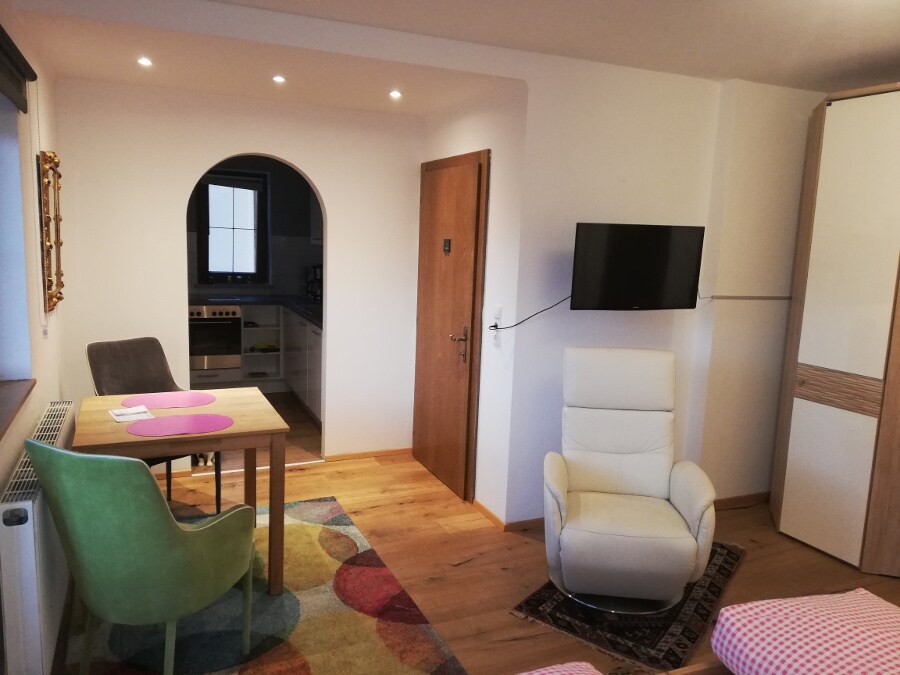 Our apartment is located in the enchanting small community of Hart, on the sunny side of the front Zillertal. Due to its central location, it is the ideal starting point for countless activities. The modern furnished apartment offers a fully equipped kitchen on 35 m², a living area with dining table and smart TV, a cozy double room with a French bed and a bathroom with shower and toilet.