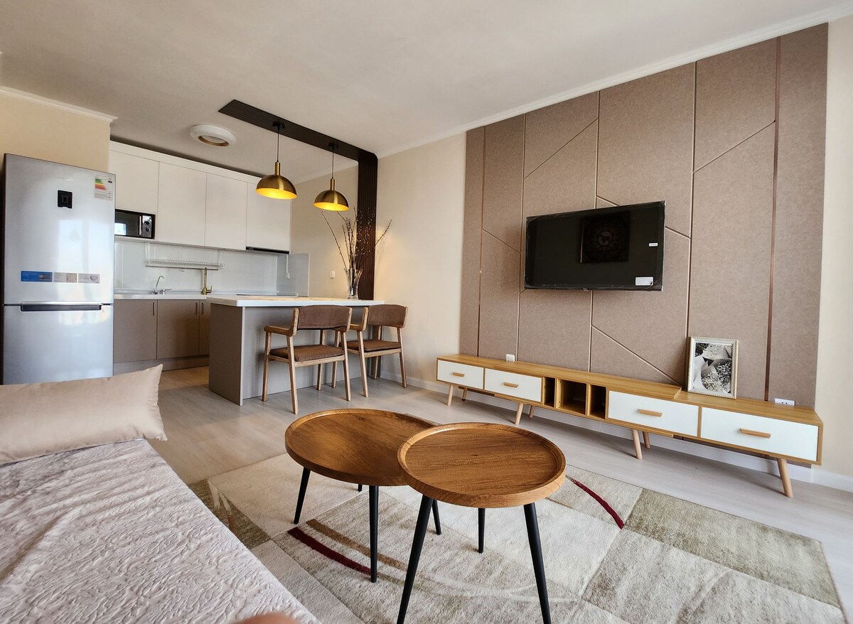 Just built in Feb, 2025 and fully furnished with new, stylish, and cozy furnitures and equipped with all major appliances and devices. The location is easy to find, 500m from Shangrila Mall and 1.5km from Sukhbaatar Square. Within a 5-15 min walk, you will find the National Amusement Park, the National History Museum, coffee shops and restaurants. The accommodation is non-smoking.