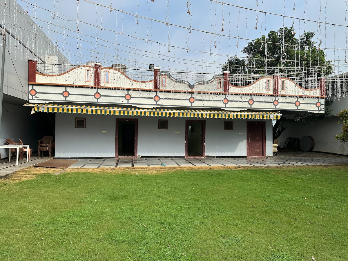 A peaceful private room near the revered Tirupatamma Temple. Enjoy a serene garden view filled with lush greenery and shady mango trees. Perfect for pilgrims or event guests at the nearby Vasanth Vihar Gardens seeking a quiet and comfortable retreat. Provides a simple, restful escape.