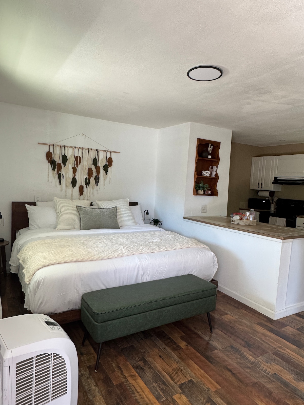 The Blue Haven, located in the friendly Gateway Community is the perfect place to rejuvenate and unwind. Kick back and relax in this calm, stylish space with all new amenities. The kitchen is fully equipped and prepped to make any meal. The firm queen bed and firm pull-out sofa are extremely comfortable with cooling mattress toppers and pillowcase covers. It is a 4-minute drive from downtown, a quarter mile from the headwaters, and .2 miles walk to the Peace Garden.