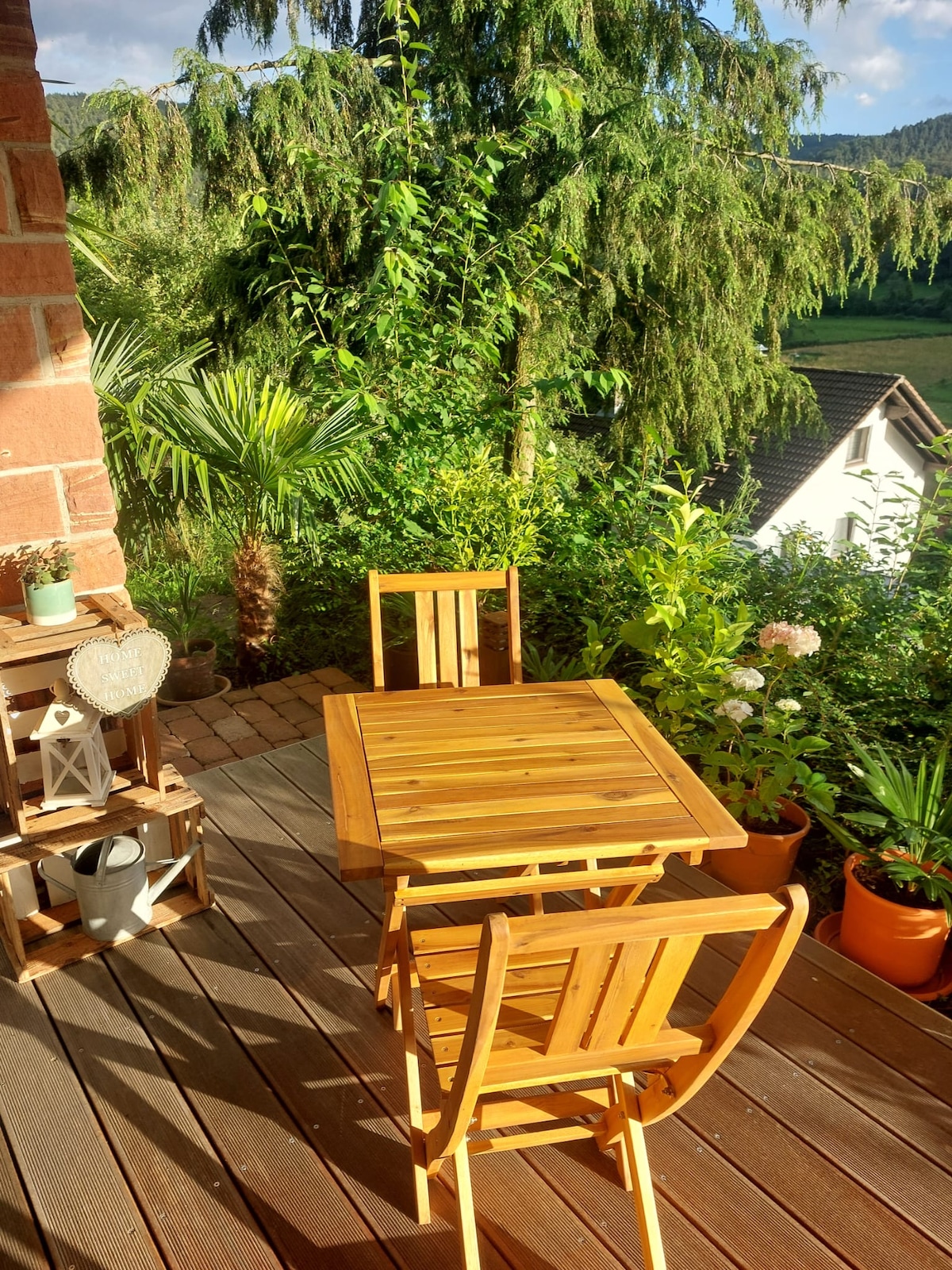 Visit us in our newly renovated vacation home on the over 1000 m² property with directly adjacent stream, covered balcony and large garden area! The 50 square meter wooden house is in a quiet location on the outskirts and was awakened from its Sleeping Beauty slumber with a lot of love for detail. Our small retreat has been completely renovated and newly furnished inside and out. Take a break and recharge your batteries with cozy evenings by the fireplace :-)