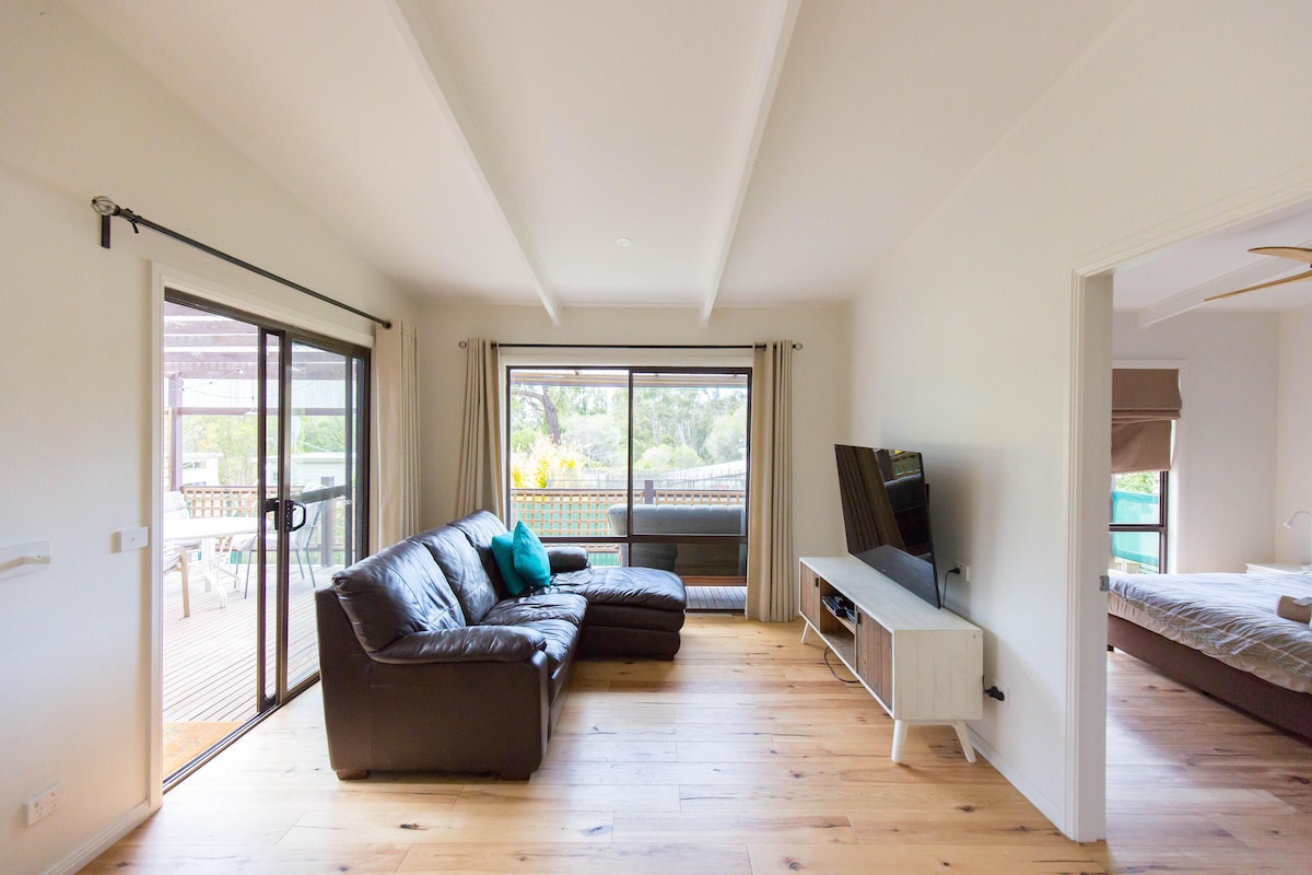 Escape to a cosy 2-bedroom sanctuary with lake views and floor-to-ceiling windows. Perfect for surfers, fishers, and nature lovers, you’ll be surrounded by kookaburras, kangaroos, wombats, and a resident koala. Now’s the perfect time to visit: if you’re lucky you may spot migrating whales along the coast, glimpse the Aurora Australis from the nearby beach, and enjoy the magic of bioluminescence glowing along the beaches and river. A peaceful, unforgettable escape.