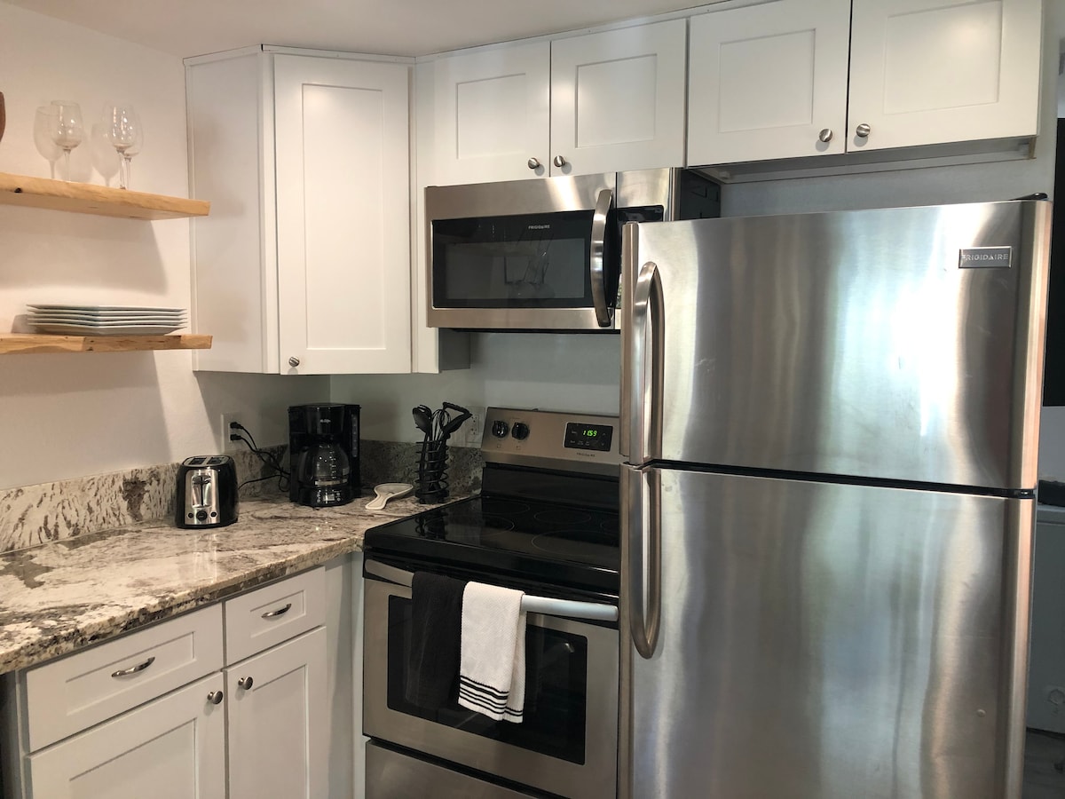 Cabin Bungalow Near Town. Private Backyard w/ Spa