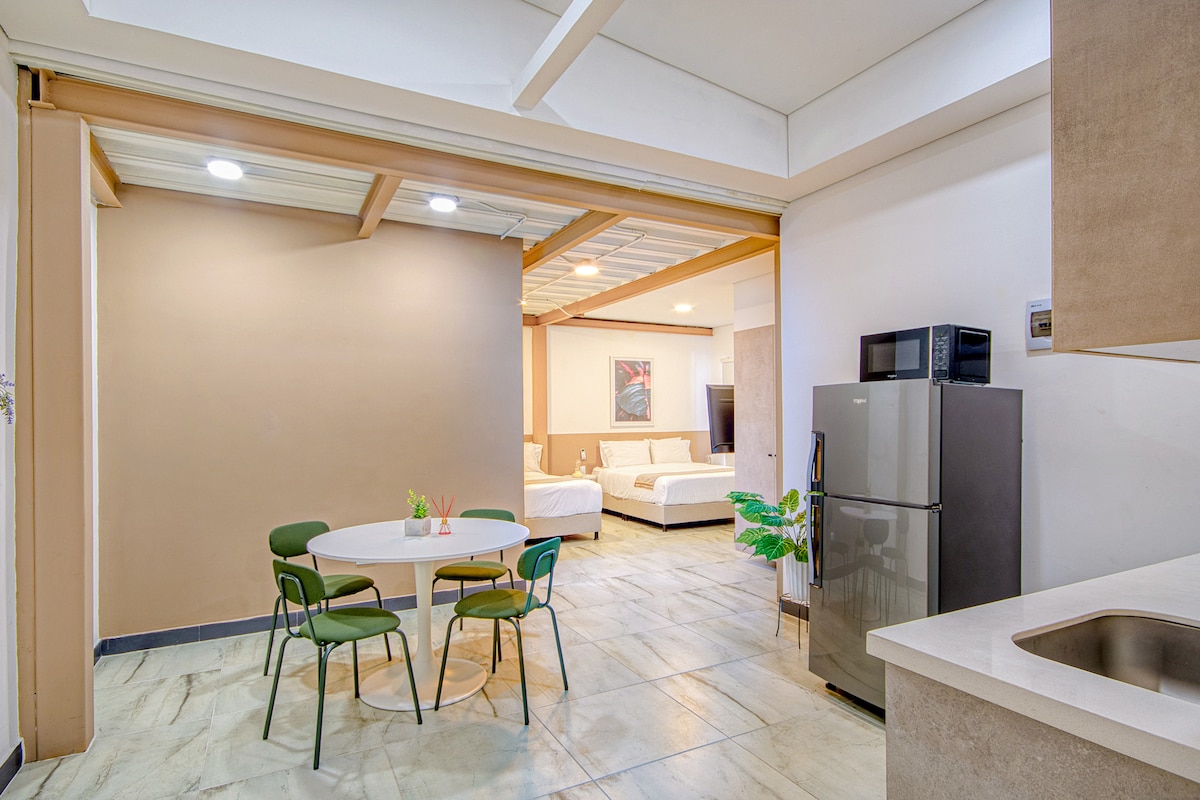 EXSTR APARTMENT ERE CENTENARIO 202 🌴 Stay in comfort and style in this elegant second-floor studio, ideally located in walkable Centenario — steps from the culture, gastronomy and nightlife of Bulevar del Río, Granada, and El Peñón. Featuring a European King bed, A/C, SmartTV, unlimited hot water, and a fully equipped kitchen. Dedicated fiber-optic internet (99%+ uptime) makes this a rare find in Cali, perfect for digital nomads, executives, solo travelers, and couples seeking a premium stay.
