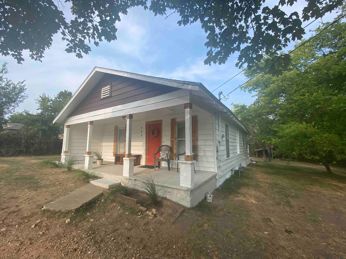 Charming 2-bedroom, 1-bathroom home tastefully renovated to maintain its 1940s quirks and conveniently located near NSU, downtown, hospitals, OSU College of Osteopathic Medicine, and just a short drive to the Illinois River. Perfect for business travelers, the house offers a dedicated workspace, reliable WiFi, and blackout curtains for those on night shifts. Enjoy the spacious backyard with a patio, fire pit, and BBQ grill for relaxing evenings. Ideal for both work and leisure stays!
