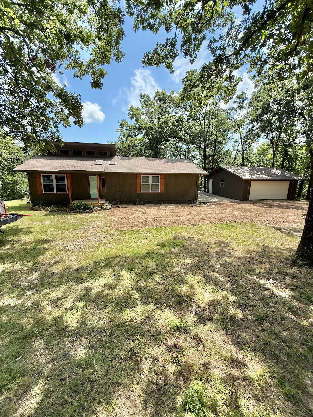 Built in 2021. Keep it simple at this peaceful, centrally-located get-away. Located 2.3 miles from Cookson Bend Marina and Carlisle Cove boat ramp; 1.3 miles from Nautical Adventures scuba shop. Located 25 minutes from the upper Illinois River. Plenty of space to park your boat or trailer. This space is 300 sqft stocked with coffee, mini fridge, and microwave. High-speed internet. 2 queen beds. Full private bathroom. Yoga sessions, kayak tours, and guided hiking available!